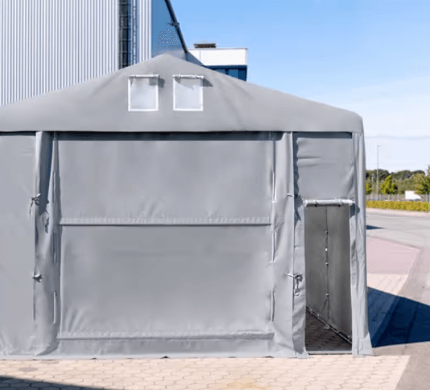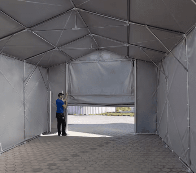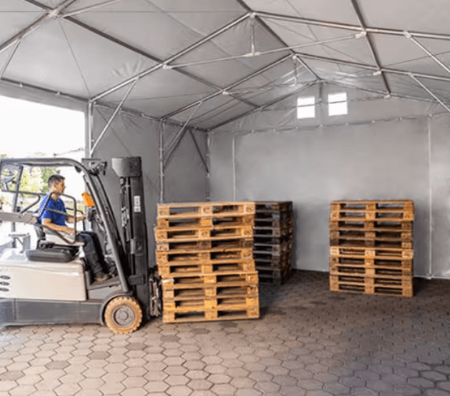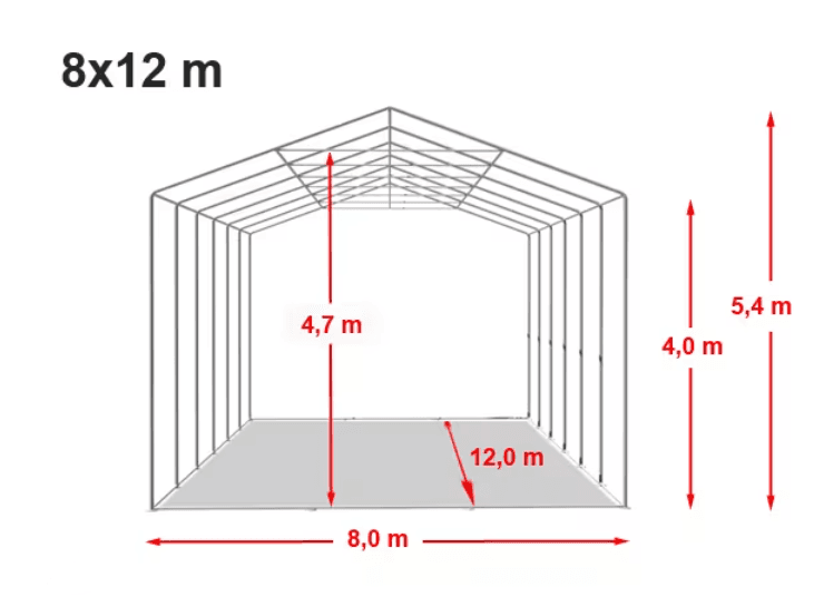 Montažni skladiščni šotor PROF 8x12x5.4×4 PVC je izbira za vse, ki potrebujejo zanesljivo, trpežno in prostorno skladiščno rešitev, ki bo kos tudi najzahtevnejšim pogojem. Z izjemno vzdržljivo konstrukcijo, velikimi vhodi in kakovostno PVC ponjavo bo Montažni skladiščni šotor PROF 8x12x5.4×4 PVC vse vaše potrebe po skladiščenju in zaščiti vašega blaga. Skladiščni šotor je investicija, ki se vam bo obrestovala z dolgotrajno uporabo in zanesljivostjo. Montažni skladiščni šotor 8×12 m je primeren za uporabo v industriji, logistiki, kmetijstvu ali na gradbiščih